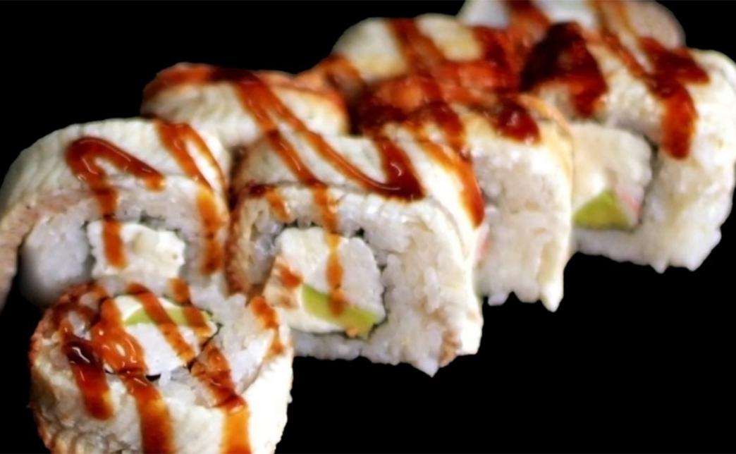 - ролл "Темпура с курицей": рис, сыр, курица, огурец, темпура, унаги соус, белый кунжут - 10 шт.